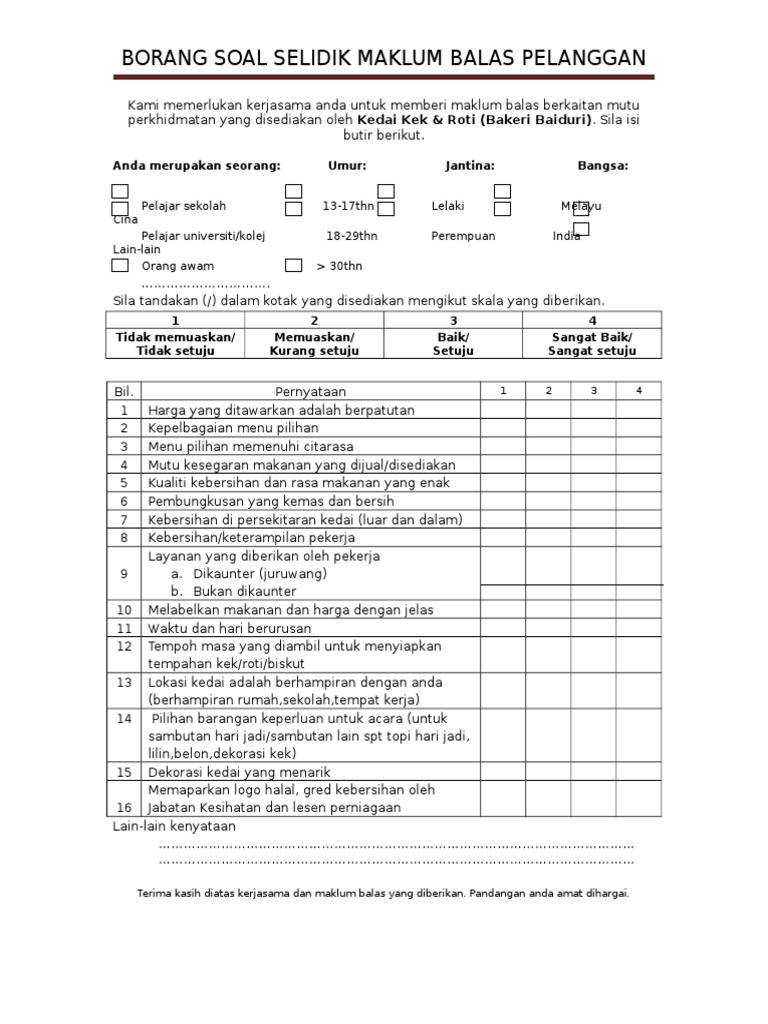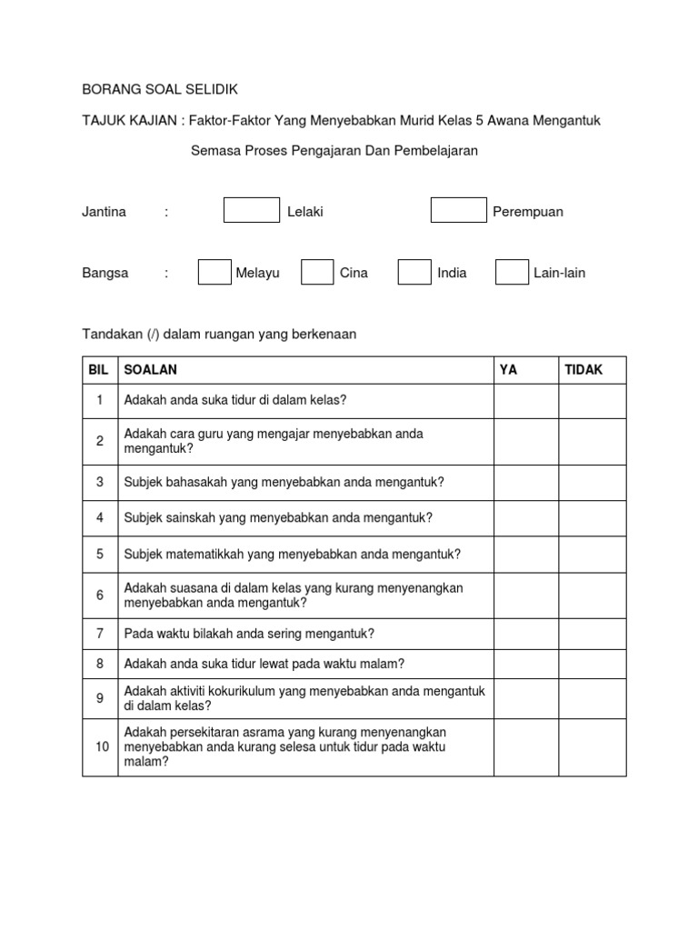 Borang Soal Selidik Untuk Pelajar Pdf